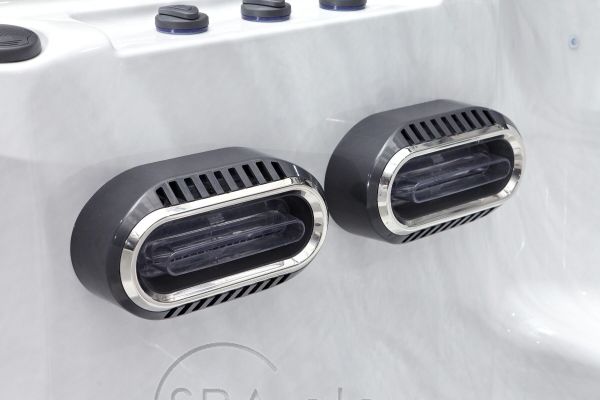 Nasze oświetlenie ożywi Twoje jacuzzi dzięki innowacyjnemu zastosowaniu diod LED. Dzięki gamie kolorowych, poprawiających nastrój świateł LED, będziesz zachwycony wieczornym zabiegiem spa, gdy zajdzie słońce. Ta wanna z hydromasażem obejmuje podwodne oświetlenie punktowe, oświetlenie linii wodnej i oświetlenie panelu narożnego.