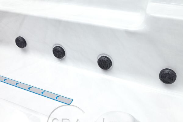 Wanna Titan Swim Spa wyposażona jest w 38 silnych dysz strategicznie rozmieszczonych w strefie pływania i wannie z hydromasażem, aby zapewnić wyjątkowy efekt hydroterapii. W strefie pływania dysze wytwarzają silny, regulowany prąd, który pozwala na energiczne pływanie lub łagodny przepływ dla ćwiczeń o niskim wpływie. Dysze w sekcji hydromasażu są przeznaczone do ukierunkowanego masażu, zapewniając ulgę i relaks głównym grupom mięśni. Zasilane przez dwie pompy o mocy 3 KM, ciśnienie strumienia jest mocne, ale regulowane, co pozwala dostosować intensywność do własnych preferencji. Niezależnie od tego, czy chodzi o masaż pływacki, relaksacyjny czy terapeutyczny, układ dysz Titan zapewnia orzeźwiający i kojący efekt.