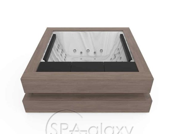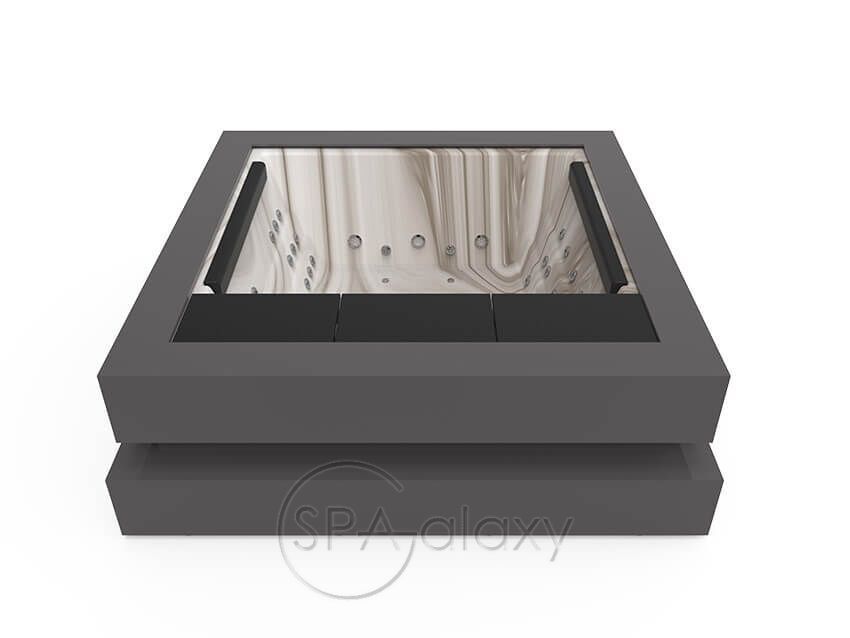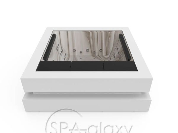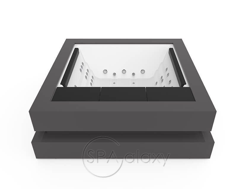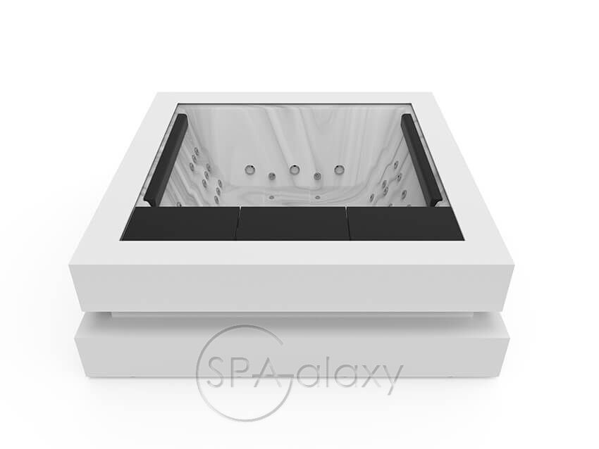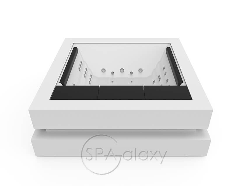 Nie jest łatwo przekazać tak silne emocje za pomocą tak powściągliwego i eleganckiego designu jak Spa Cube. W rzeczywistości, starając się przywołać sztukę współczesną, Aquavia zrezygnowała w tym przypadku z ergonomicznego projektu, aby użytkownicy mogli swobodnie poruszać się po przestronnej i elastycznej przestrzeni dla maksymalnie 4 osób.