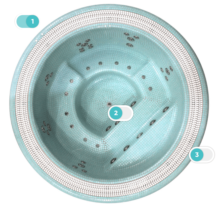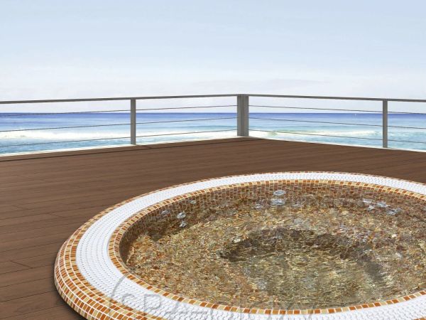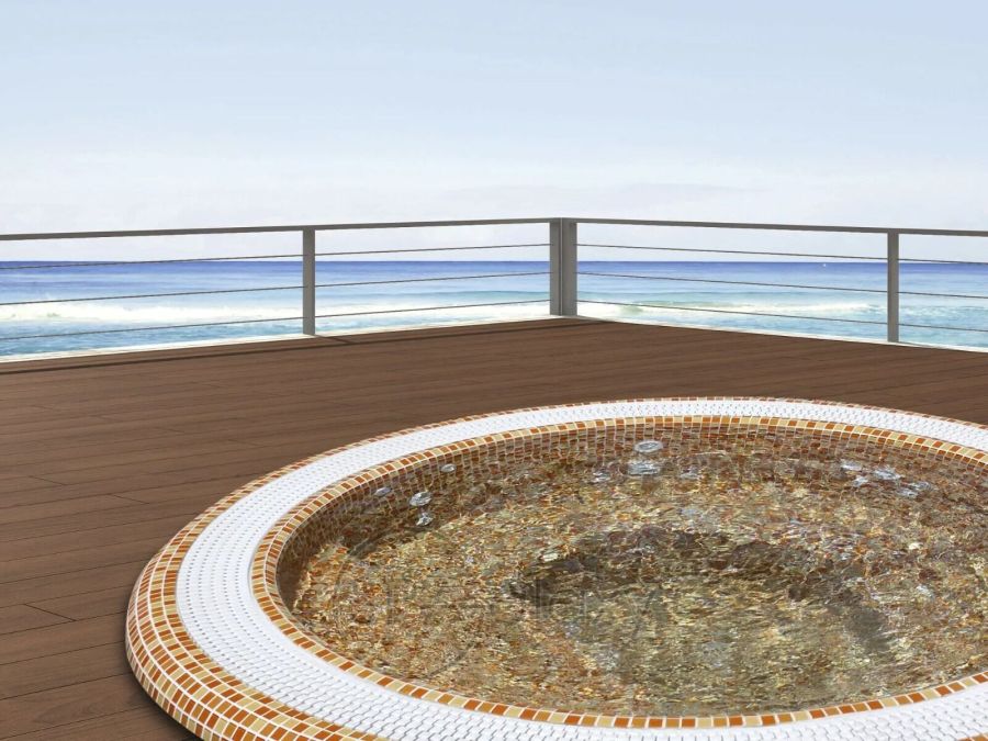 Mozaika szklana nadaje wannie z hydromasażem indywidualny wygląd. Wykonana jest z wysokiej jakości mozaiki ceramicznej. Wanna z hydromasażem jest dostępna w szerokiej gamie konfiguracji kolorystycznych.