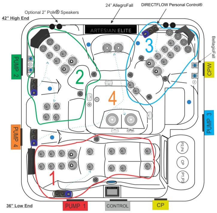 W przeciwieństwie do innych producentów, wanny spa Artesian są wyposażone w system Direct Flow, który umożliwia regulację mocy dysz na prawie każdym siedzeniu. Oznacza to, że każda osoba może dostosować i spersonalizować swój osobisty poziom terapii bez wpływu na innych.