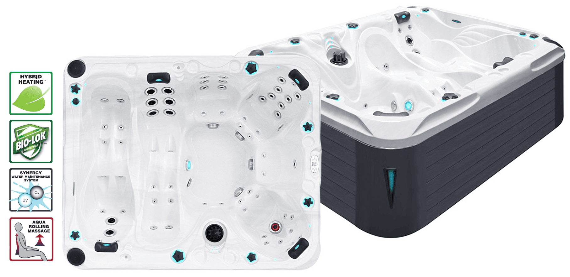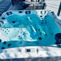 Basen z hydromasażem jest wypełniony czystą wodą, która została poddana specjalnemu wieloetapowemu uzdatnianiu (Synergy Water Maintenance System).