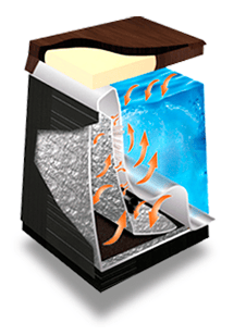 W 2010 roku technologia ta została zaadoptowana przez IQUE podczas tworzenia nowych modeli basenów z hydromasażem. System izolacji Triple Thermal Shield to najskuteczniejsza izolacja o współczynniku odbicia do 97%, a straty ciepła w wannach IQUE są zminimalizowane.
