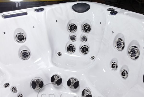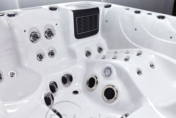 Energy jest dostępny na zamówienie w 3 kolorach do wyboru: Sterling Silver, Midnight Canyon lub Odyssey. Ta wanna może wygodnie pomieścić 6 osób, pozostawiając dużo miejsca. Energy jest wyposażona w 64 dysze, a także wodospad LED i fontannę LED, dzięki czemu jest idealna dla tych, którzy chcą się zrelaksować i czerpać korzyści z hydroterapii.