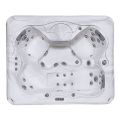 Jadeite jest wyposażony w 38 dysz, które mogą pomieścić cztery osoby, w tym wygodną leżankę. Konstrukcja Jadeite jest idealna dla małej rodziny, nie zajmując dużo miejsca. W pełni wyposażona w fontanny wodne i wielokolorowe oświetlenie LED, ta wanna z hydromasażem jest idealna do ciasnych przestrzeni.