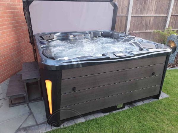 Wchodzenie i wychodzenie z wanny z hydromasażem jest łatwe dzięki odpowiednim stopniom, które znajdują się w zestawie do wanny z hydromasażem Platinum Spas. Przedłuż żywotność pokrywy wanny z hydromasażem, kupując podnośnik pokrywy, który również znacznie ułatwi jej otwieranie i zamykanie.
