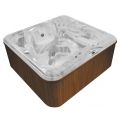 Stosunkowo niewielkie rozmiary minibasenu Jacuzzi Oxia z powodzeniem połączono z ergonomicznym układem, w pełni zgodnym z kanonami prawdziwego komfortu. Eleganckie panele boczne wykonane z metakrylanu lub naturalnego drewna uzupełniają wyposażenie basenu.