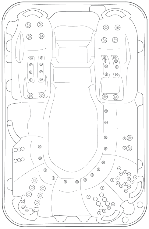 Podwójne siedzenia to idealne rozwiązanie dla par i przyjaciół korzystających z Palladium. Fotele te są wyposażone w grupy kierunkowych dysz masujących, które zapewniają stymulujący masaż łagodzący obolałe, zmęczone mięśnie. Podwójne podświetlane fontanny z przepływem laminarnym zapewniają uroczą rozrywkę. Podświetlane trzypoziomowe stopnie zapewniają bezpieczne wejście i wyjście ze spa.