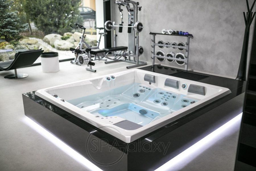 W misie zainstalowano różnorodne dysze masujące, w sumie 61, dzięki czemu podczas hydromasażu nie poczujesz żadnych części składowych. Dwa wygodne leżaki i trzy fotele zapewnią Twojej firmie niezapomniany relaks i przyjemny masaż wellness całego ciała. Dla jeszcze większej przytulności dostępne są dwa uchwyty na szampana i trzy miękkie zagłówki. Specjalnie zaprojektowany wyświetlacz LCD ułatwia sterowanie dyszami. Dno basenu jest również pokryte specjalną powłoką antypoślizgową, a podwójne poręcze ze stali nierdzewnej o wysokiej wytrzymałości ułatwiają poruszanie się.