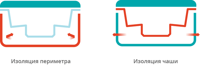 Dwuwarstwowa izolacja Vortex obejmuje zarówno zewnętrzną ramę, jak i misę. Jest to najbardziej wydajny sposób izolacji. Zatrzymuje powietrze i wykorzystuje te same zasady, co nowoczesne okna z podwójnymi szybami.