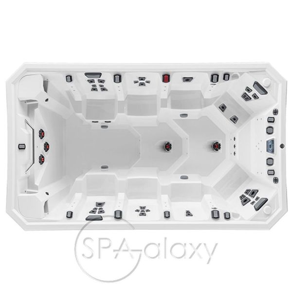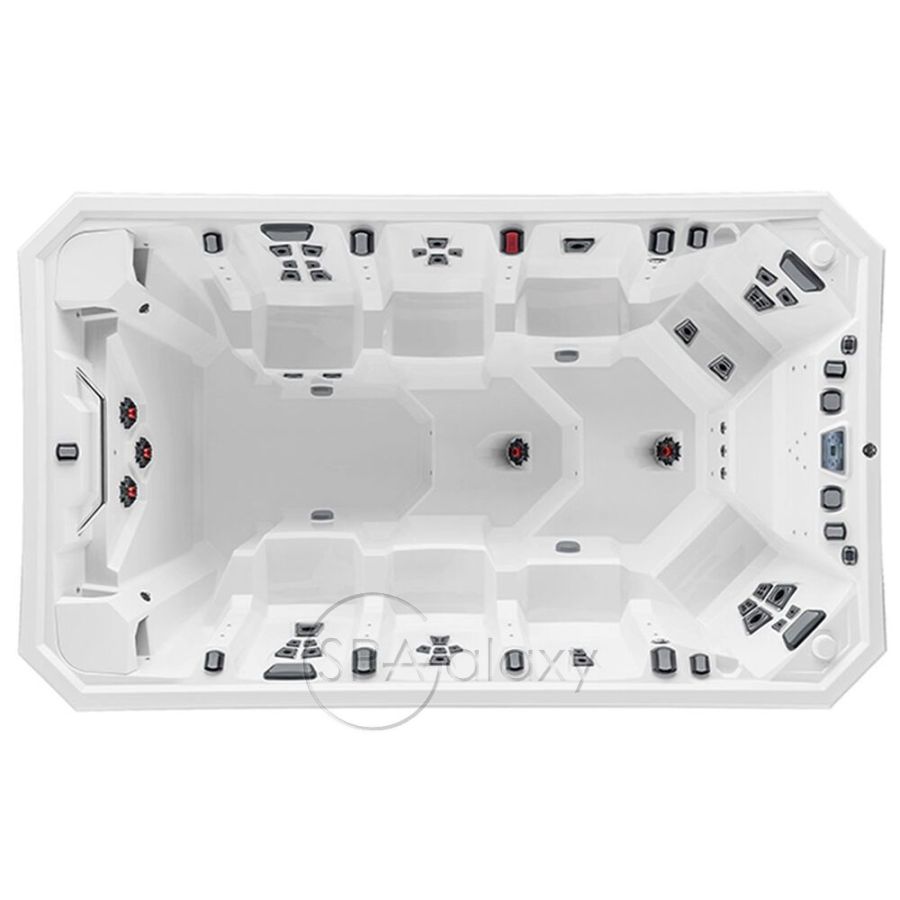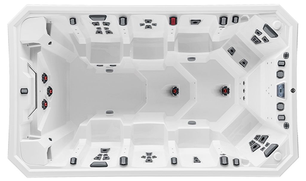 Vector21 V150 to pływak nowej generacji wyposażony w sterowanie przepustnicą Vector Optimised Laminar Therapy (V-O-L-T™) i futurystyczne nakładki Jetpods, które zapewniają kontrolę nad wrażeniami. Te same dysze Whitewater-4 z modeli ATV również zapewniają potężną moc. To niezapomniane przeżycie w wannie na super imprezę! Duży rozmiar obejmuje osiem ergonomicznych siedzeń, dzięki czemu imprezowicze mogą gromadzić się w komfortowych warunkach. Ponadto długość i rzeczywista głębokość pływania wynosząca 42 cale (107 cm) pozwalają amatorom pływania poruszać się w całym zakresie, a dla dzieci i dzieci pod prysznicem jest mnóstwo plusku.