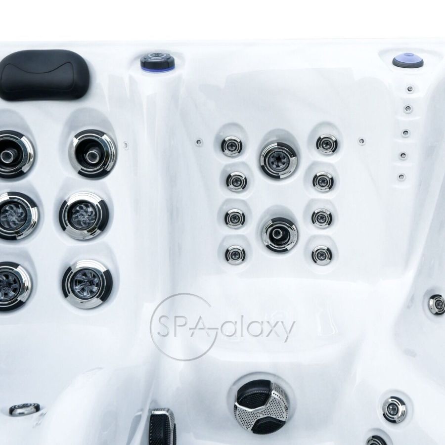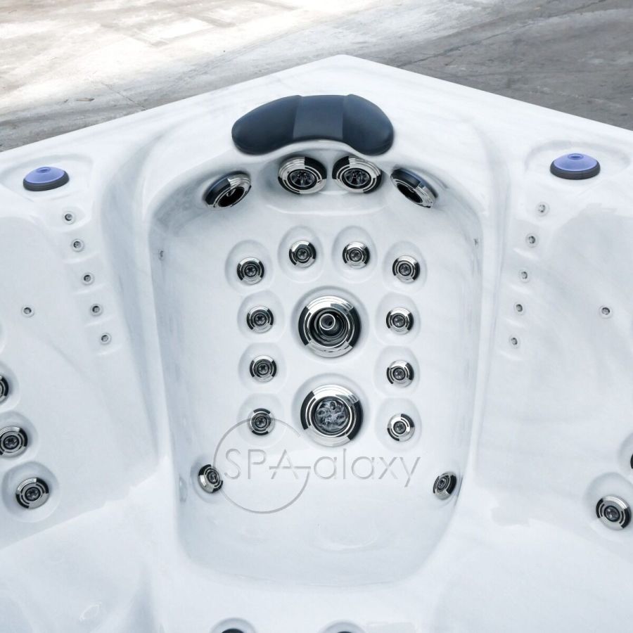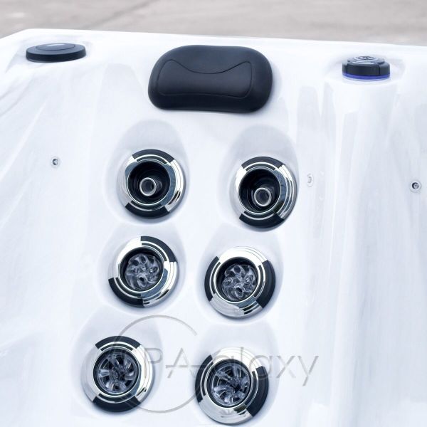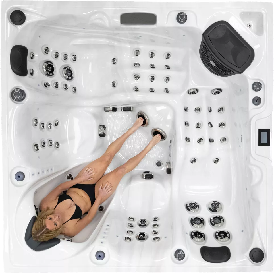 З двома повнорозмірними шезлонгами для дорослих і трьома сидіннями це ідеальна гідромасажна ванна для п'яти осіб.